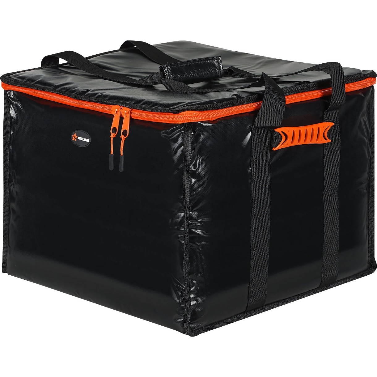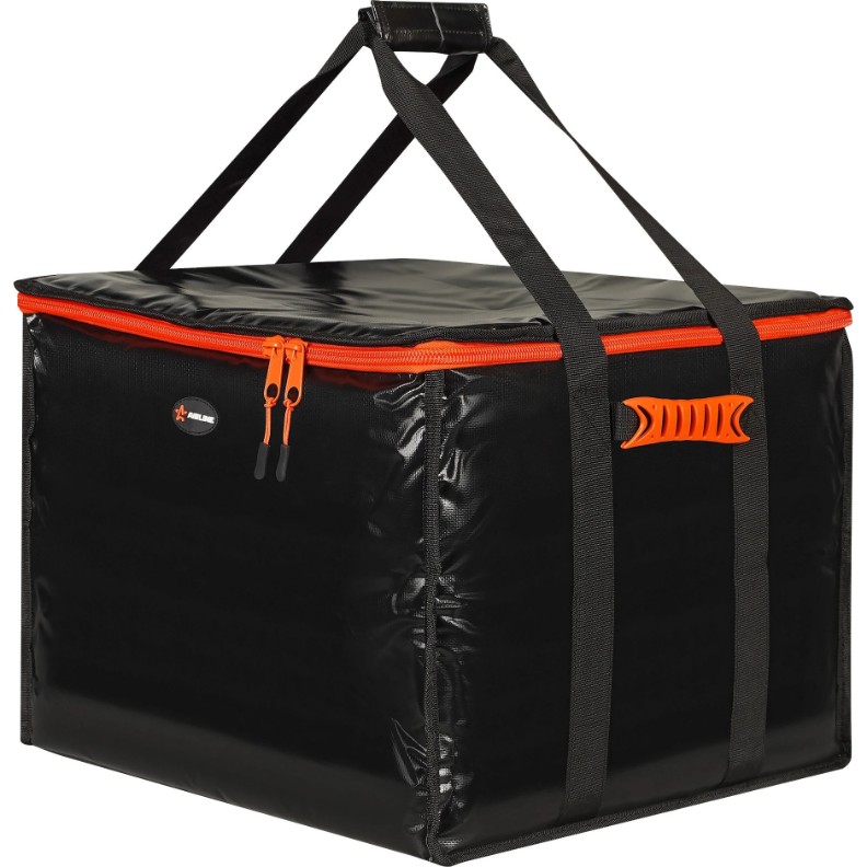 Сумка имеет большой размер кубической формы и предназначена для хранения и перевозки в автомобиле большого количества продуктов. Для удобства открывания замочки молнии оснащены пуллерами (подвесками).