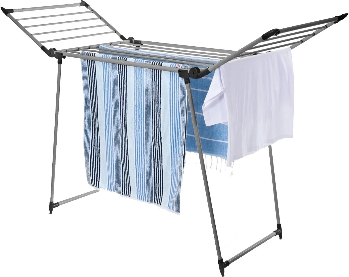 Современный и нейтральный дизайн в сочетании серебристого и чёрного цветов гармонично вписывается в любой интерьер, делая сушку белья удобной и аккуратной.