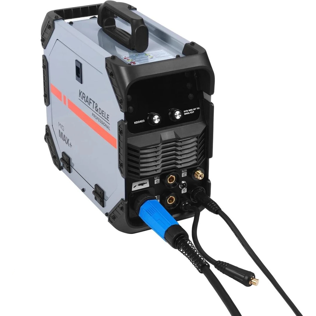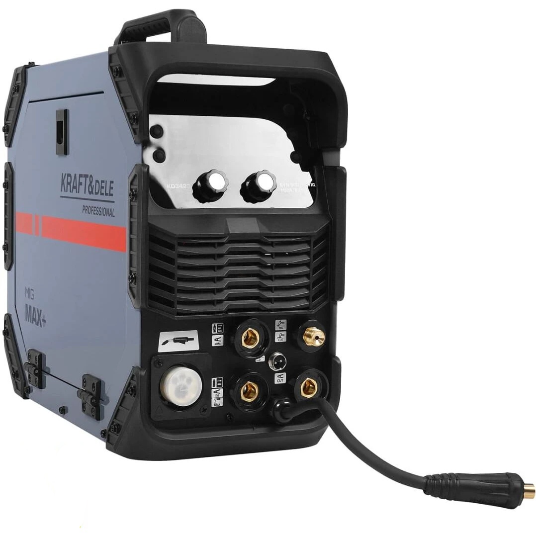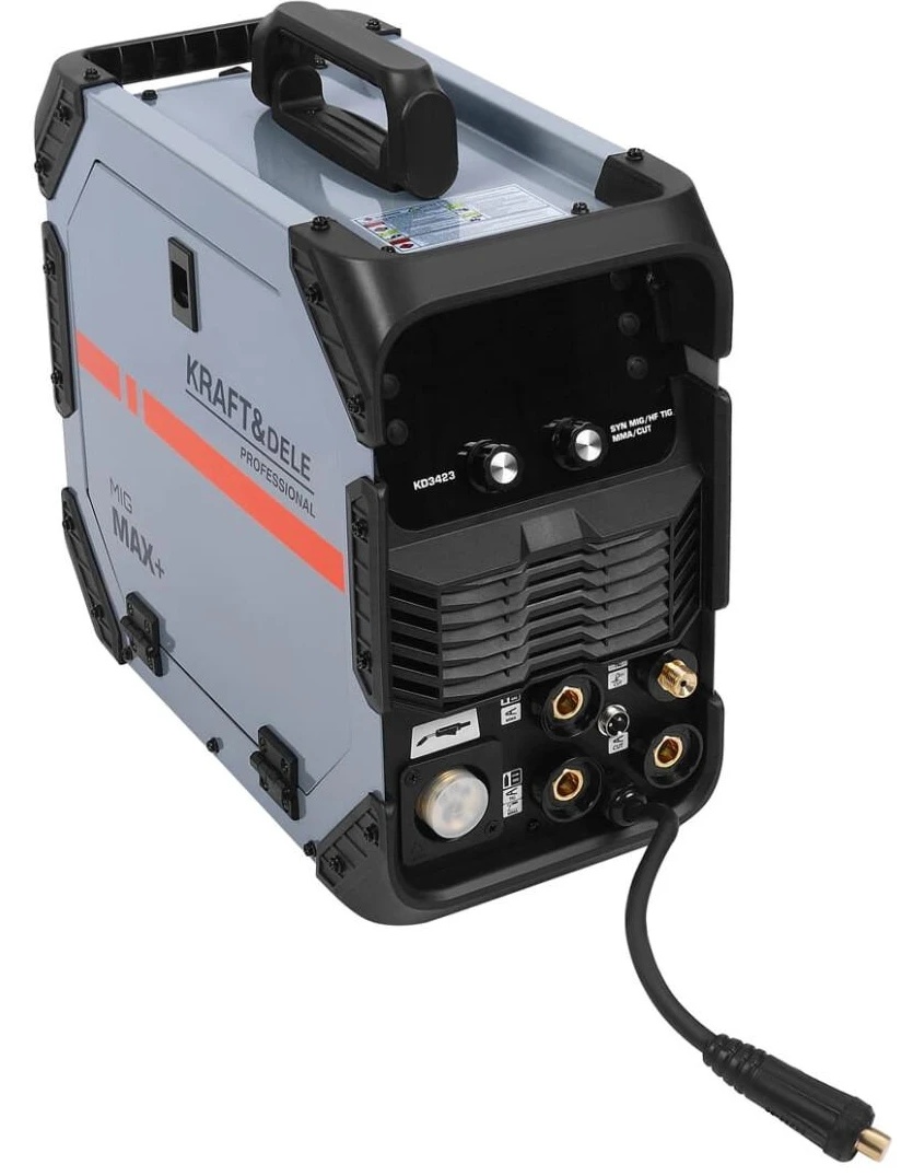 KD3423 — это многофункциональный инверторный сварочный аппарат бренда KRAFT&DELE, оснащённый технологиями MIG, MMA, TIG, а также плазменной резкой. Устройство разработано для мобильных работ в мастерских, ремонта в полевых условиях и лёгких конструкционных проектов. Благодаря инверторному модулю IGBT оборудование обеспечивает высокую производительность, стабильную дугу и возможность универсальной работы различными методами сварки и резки металла.