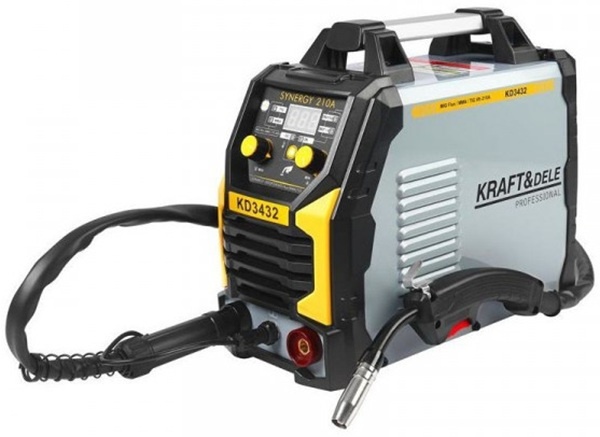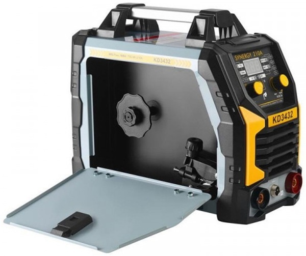 Комплектацияинверторный сварочный аппарат KD3432, заземляющий зажим, сварочная горелка MIG/MAG, сварочный шлем MMA, металлическая щетка