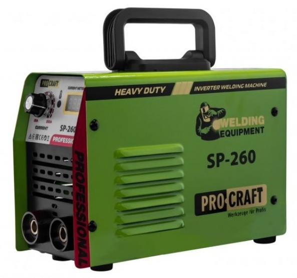 Инверторный сварочный аппарат Procraft SP-260 это 260 амперный инверторный сварочный аппарат с электронным таблом. Предназначен для ручной дуговой сварки изделий из стали электродами. Сваривание происходит постоянным током металлическими плавкими электродами для постоянного или переменного тока с основным, рутиловым, целлюлозным, кислотным и другим покрытием.