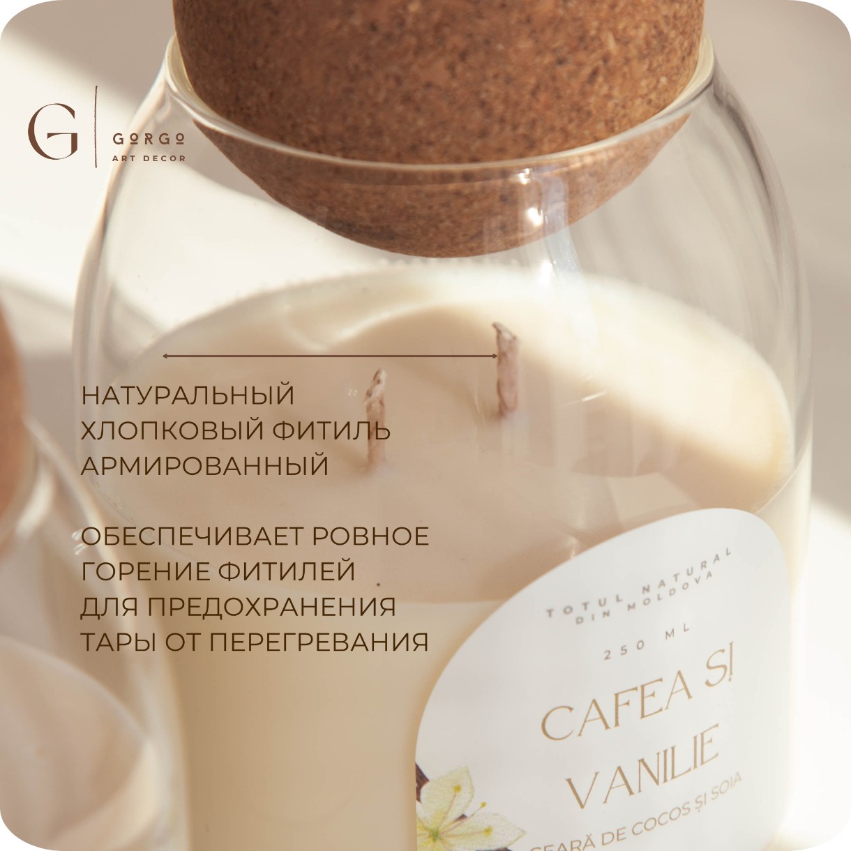 Экологичность: 100% натуральный кокосовый и соевый воск, безопасный для здоровья