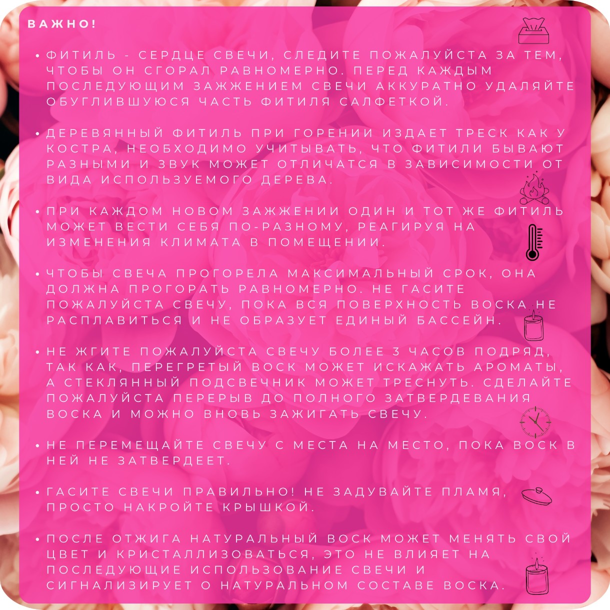 До 40 часов горения — соевый воск горит дольше парафина, обеспечивая более длительный уют