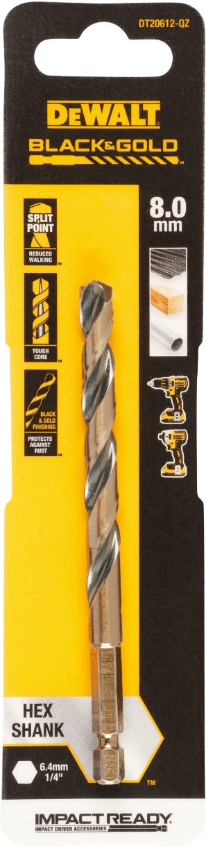 Impact Ready — шестигранный хвостовик 1/4" разработан, чтобы выдерживать радиальное скручивание при использовании ударных молотков, и совместим с большинством дрелей.