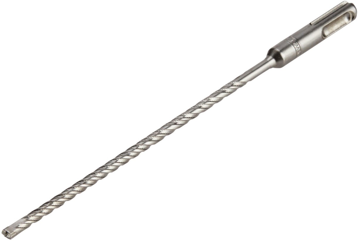 Буры DeWALT SDS plus серии XLR с 4-мя режущими кромками и цельной твердосплавной пластиной применяются для бурения отверстий в армированном бетоне и бетоне марки М400 и выше. Такие буры выпускаются в диаметрах от 5 до 14 мм и рабочей длинной от 50 до 400 мм. Головка бура DeWALT присоединяется методом сварки. Это позволяет получить наконечник бура, целиком состоящий из карбида. Больше карбида - больше ресурс. А также позволяет обеспечить открытый дизайн головки с достаточными проходами для отведения шлама, что увеличивает скорость сверления.