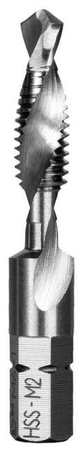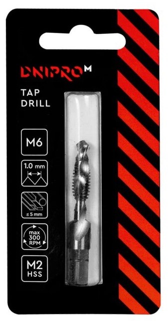 Сверло-метчик Dnipro-M, HSS M2, HEX, (М6×1 мм) предназначен для сверления и нарезки резьбы в неглухих металлических конструкциях с помощью дрелей и шуруповертов.