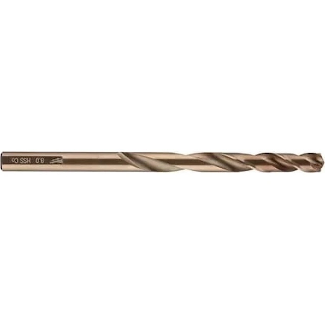 Сверло по металлу HSS-Co (8.0 мм, 1 шт.) Milwaukee 4932363274 предназначено для сверления высоколегированных сталей и металлов с пределом прочности на разрыв свыше 1000 Н/мм² (нержавеющая сталь, теплоупорная и кислотноупорная сталь). Сверло изготовлено из быстрорежущей стали (95%) с добавлением кобальта (5%). Именно благодаря кобальту сверло способно работать при высоких температурах во время сверления. Сверла отполированы. Угол режущей кромки 135° для улучшенного центрирования.