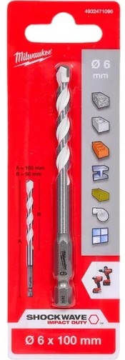 Сверло по мультиматериалам (6x100 мм; хвостовик HEX) Milwaukee 4932471096 рассчитано для работы как с винтовертами (с ударом), так и с инструментами, оснащенным трехкулачковыми патронами, такие как шуруповерты и ударные дрели.