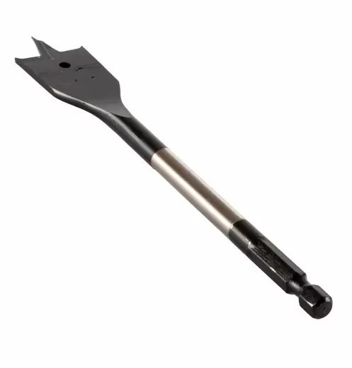 Сверло по дереву плоское – это надежный и долговечный инструмент, идеально подходящий для обработки мягкой и твёрдой древесины, а также пластика и картона. Изготовлено из инструментальной стали, что гарантирует прочность и стабильные рабочие характеристики даже после длительного использования. Шестигранный хвостовик обеспечивает стабильность при работе, исключая риск случайного проворота сверла.