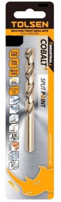Сверло Tolsen HSS-Co применяется для выполнения отверстий в металле с помощью дрели или шуруповёрта. Подходит для сверления высокопрочных легированных и высоковязких сталей. Выполнено из инструментальной быстрорежущей стали с покрытием кобальт, благодаря чему отличается высоким запасом прочности, что дает возможность работать с особо твердыми материалами. Сверло устойчиво к нагреву, к истиранию, не теряет свои свойства и не становится хрупким.