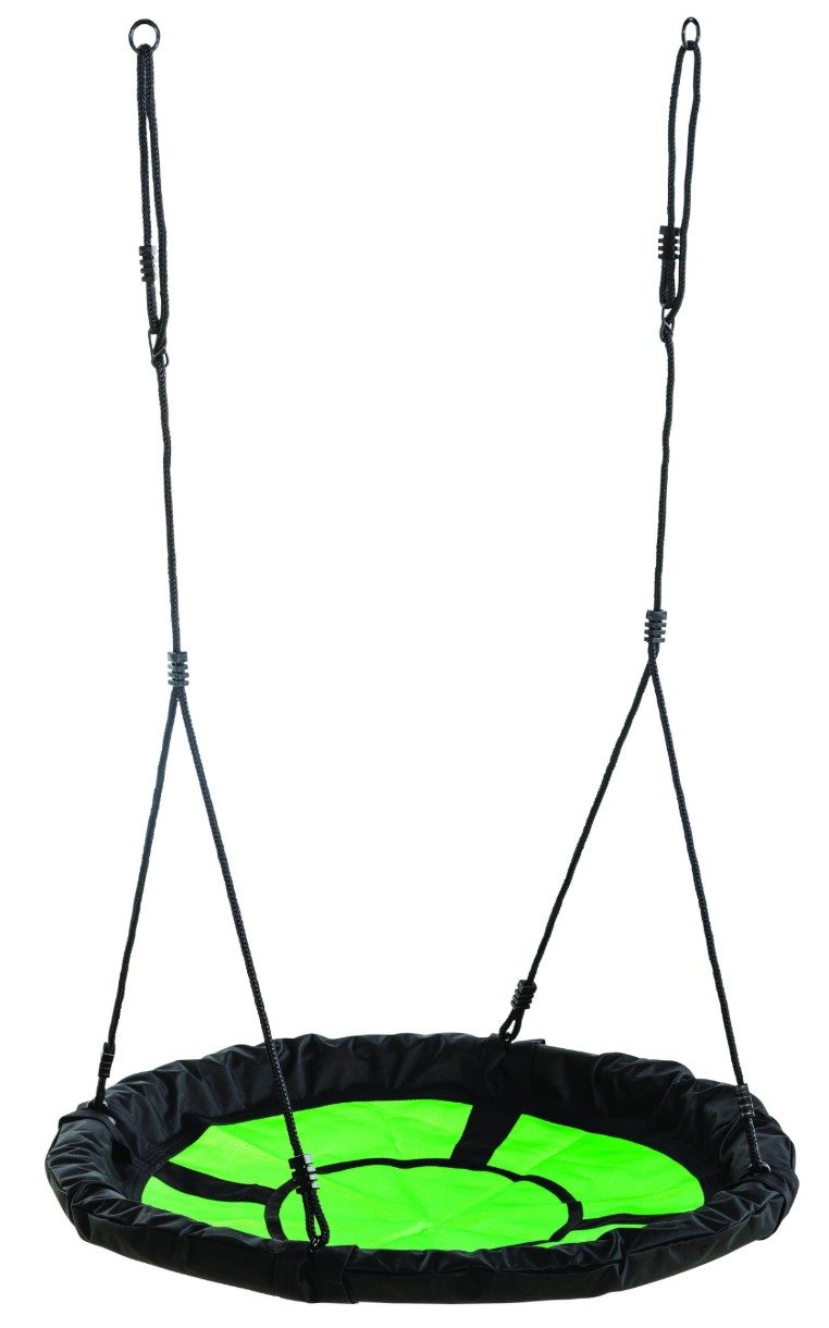 Качель-гнездо "Swibee" поставляется в разобранном виде в аккуратной картонной коробке и может быть легко собрано пользователем. Черная плетеная веревка с черными уэлдами приидает качелям интересный вид и имеет простую регулировку по длине. Металлическая рама обита со всех сторон пенкой для смягчения возможных ударов. Материал ткани одновременно приятный на ощупь и прочный. Вода легко уходит сквозь поры во время дождя, а ткань быстро просыхает. Кольца и восьмерки изготовлены из оцинкованной стали. Уэлды на веревке изготовлены из черного пластика.