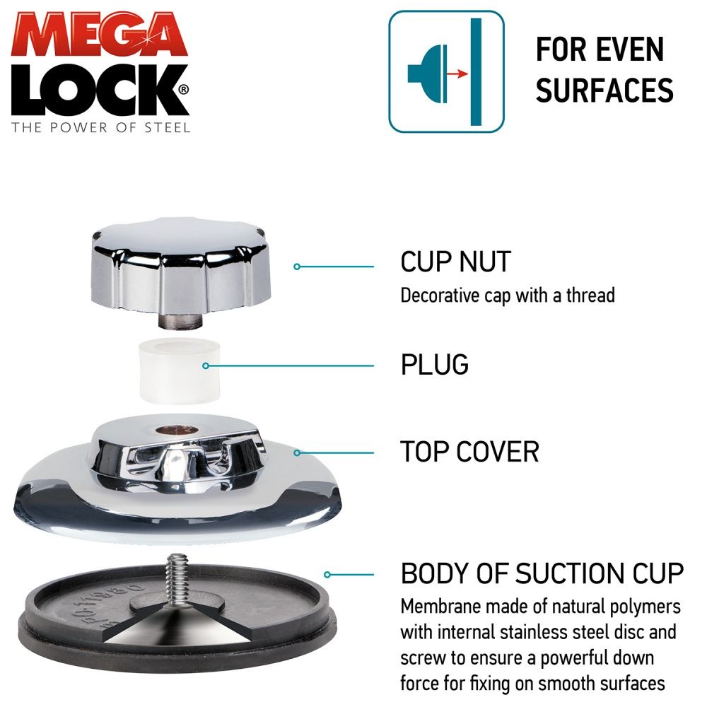 Присоска размещена в пластиковую чашку, что позволяет более прочно фиксировать держатель. В механизме крепления использован винт Архимеда для создания мощной прижимной силы. Специальное кольцо защищает от перекручивания винта.