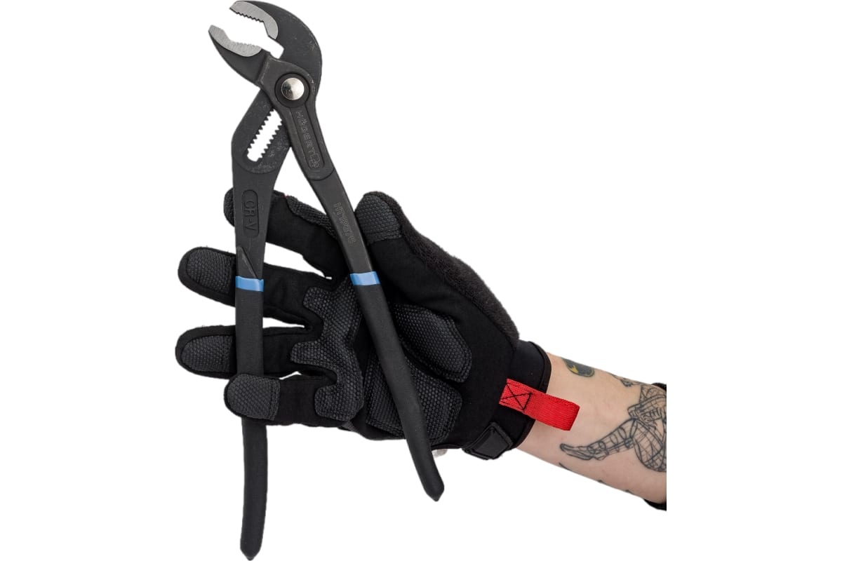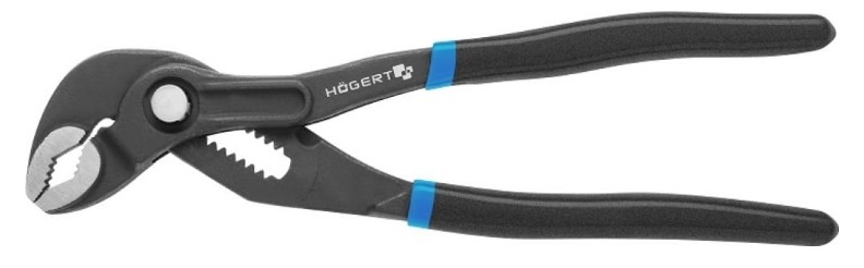 Переставные клещи HOEGERT TECHNIK с кнопочным фиксатором 250 мм HT1P375 прошли дополнительную закалку. Зубцы в рабочей зоне обеспечивают надежный хват.
