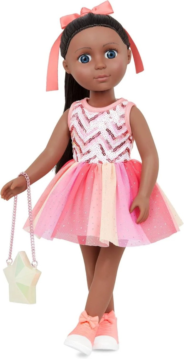 Наряд «Starlight Delight» вдохновляет маленьких хозяек «дотянуться до звезд» вместе с любимой куклой, добавляя нотку сияния в любую воображаемую историю.
