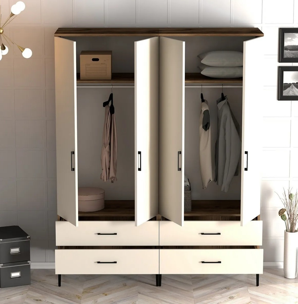 Размеры 160 см ширины, 47,5 см высоты и 201,4 см глубины обеспечивают большой объём хранения для одежды, аксессуаров и других предметов. Беспорядок исчезнет, а пространство станет аккуратным и организованным.
