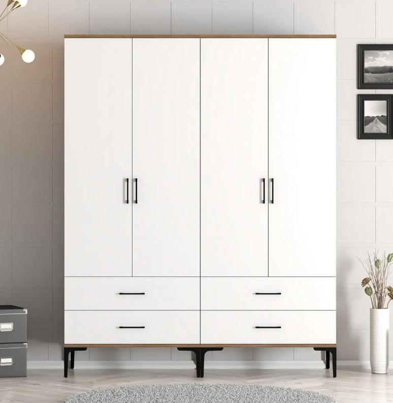 Шкаф изготовлен из ДСП-панелей, покрытых меламином. Толщина 18 мм обеспечивает прочность и устойчивость, превращая его в надёжное решение для хранения на долгие годы.