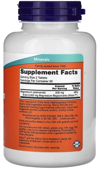 Витамины NOW Magnesium Glycinate 200mg 180tab