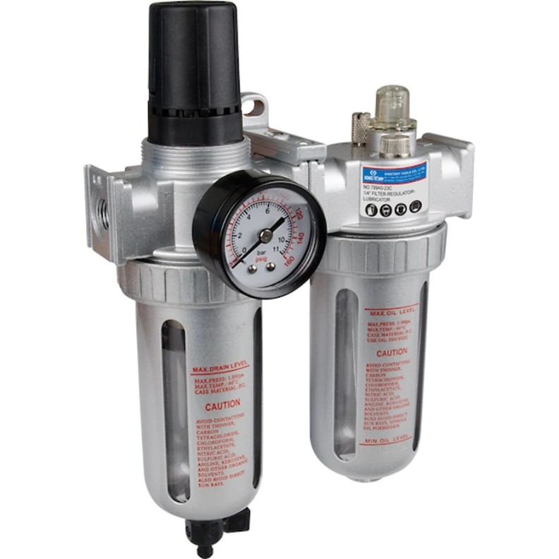 Фильтр-влагоотделитель с редуктором и лубрикатором KING TONY 799A0-33C служит для установки в пневматическую линию для подготовки сжатого воздуха для оборудования. Используется на СТО, шиномонтажах, в гаражах и т.д.