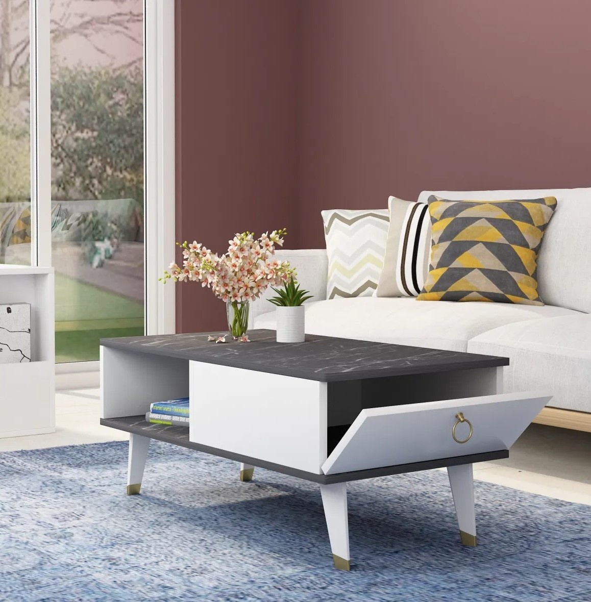 Журнальный столик Trendy Delux White/Black Marble/Gold 90x42x45cm GTR006108