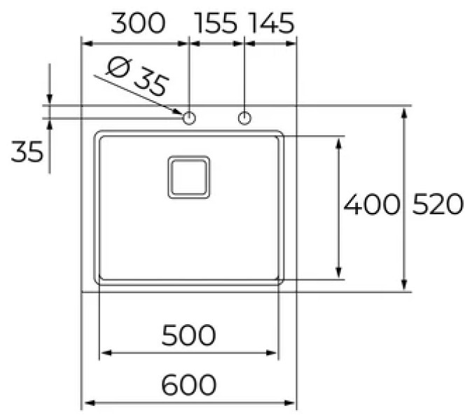 Размер мойки600х520 мм