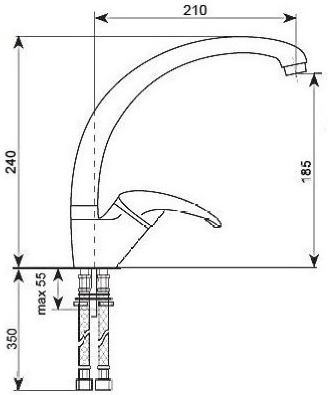 Длина излива210 мм