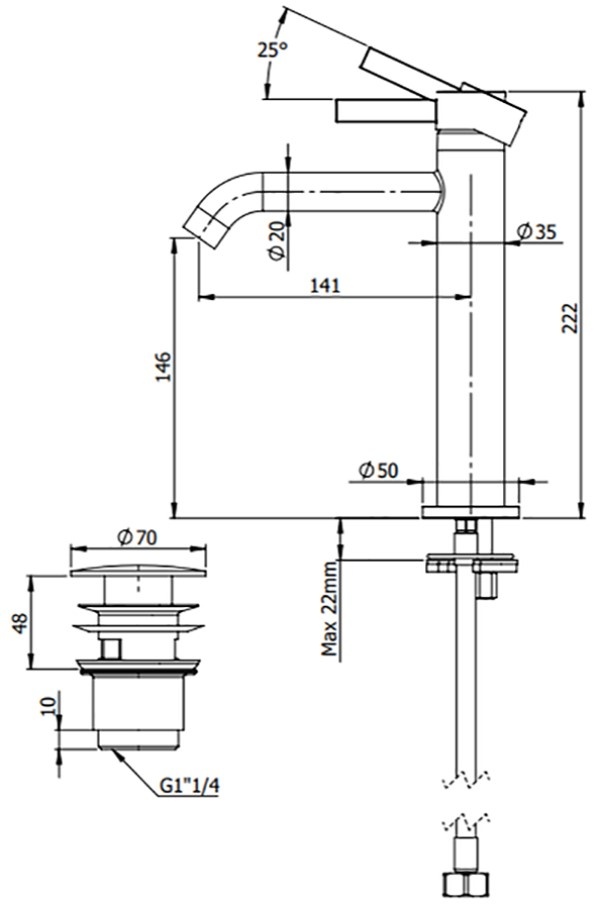 Длина излива141 мм