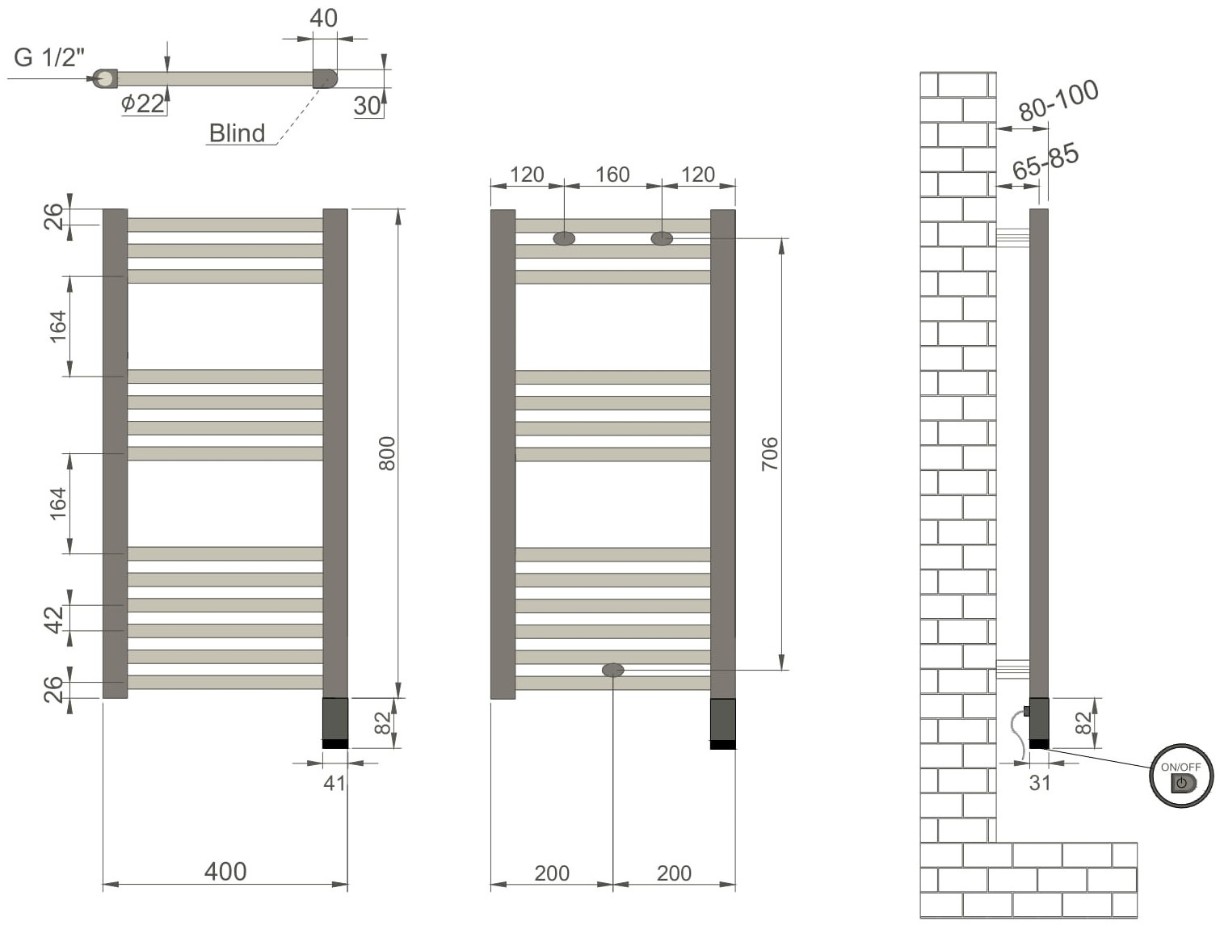 Полотенцесушитель Radiva Flat Haiti 400x800mm Black Mat