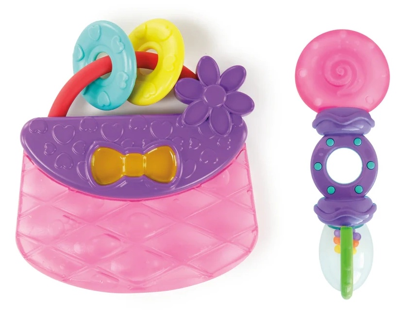 Погремушки Oball сделаны из восхитительно гибкого материала с отверстиями для пальцев, которые поощряют маленькие ручки практиковать хватание. Добавьте немного стиля в успокаивающее время с игрушкой-кошелек Carry & Teethe, которая наполнена очищенной водой и имеет несколько текстур поверхности и бусину-ловитель. Ее можно хранить в холодильнике для еще большего облегчения! Спрячьте дополнительные охлаждаемые прорезыватели Chill & Teethe в холодильнике для охлаждения и комфорта. Простые в захвате формы наполнены очищенной водой, чтобы помочь ребенку «остыть»! Куда бы вы ни пошли, эти милые фиолетовые, розовые и бирюзовые игрушки на ходу подарят ребенку развлечение и комфорт. Все игрушки не содержат бисфенол А, включая 6 игрушек-прорезывателей. Для очистки просто протрите мягким мылом. Включает игрушки, начиная с возраста новорожденных и старше.