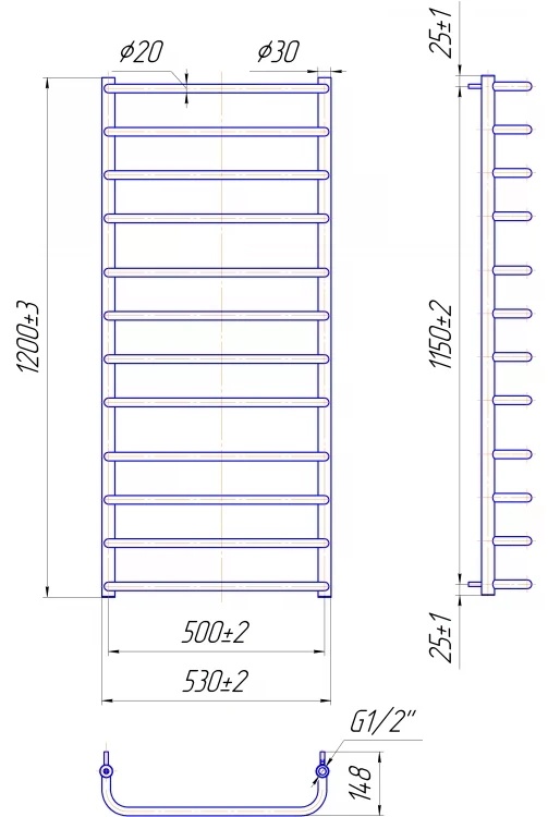 Полотенцесушитель Mario Standart 1200х530/500