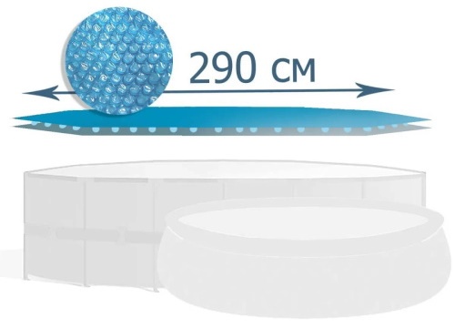 Солнечное покрывало с обогревающим эффектом для бассейнов 305 см (D290 см) (Intex 28011). Обогревающий тент-покрывало для бассейнов Easy Set и Metal Frame, Prism Frame диаметром 305 см. Не крепится к бассейну, достаточно просто положить его на поверхность воды и расправить по всей площади. Процесс накрытия бассейна занимает меньше минуты.