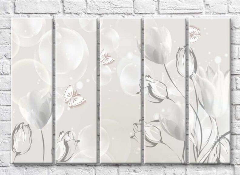 Картина Rainbow Monochrome tulips and butterflies on a background of balls (3551864)