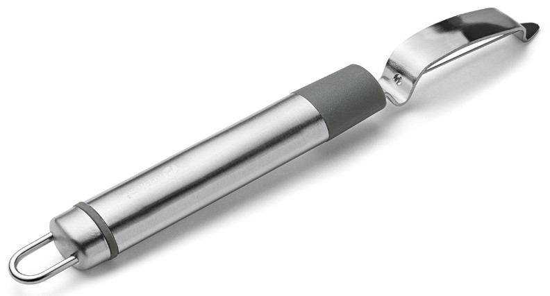Картофелечистка предназначена для аккуратного удаления кожуры с овощей и фруктов. Изделие подходит для правшей и левшей благодаря двухсторонней заточке лезвия. Картофелечистка имеет петлю для подвешивания в любое место на кухне.Материал изготовления: нержавеющая сталь 410, пищевой пластик PP.
