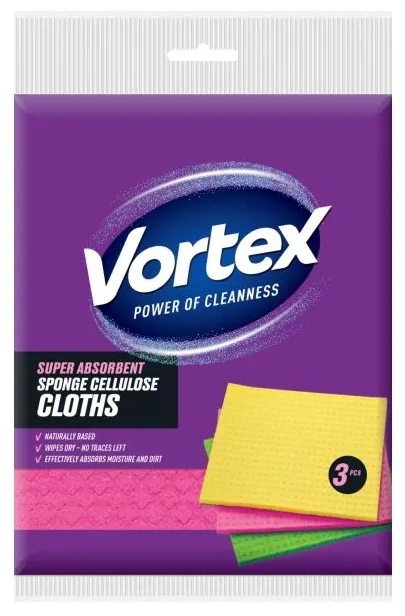 Салфетки для уборки Vortex Super Absorbent Sponge Cellulose 3pcs