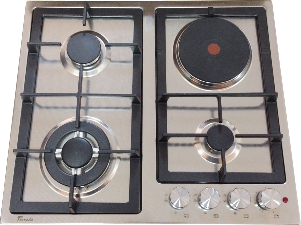 Встраиваемая комбинированная варочная поверхность из текстурированной нержавеющей стали.