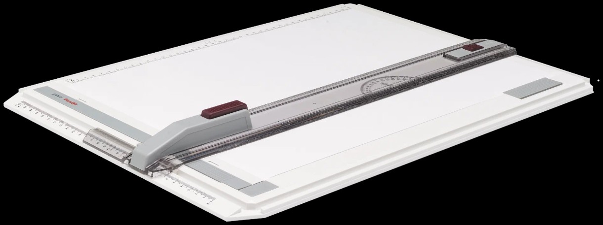 Направляющие для рейсшины имеются со всех 4-х сторон, что позволяет работать как при горизонтальном, так и при вертикальном положении.