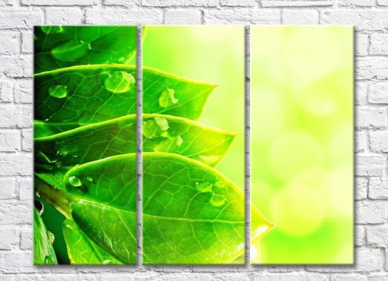 Картина Rainbow Leaves with dew drops on a sunny background (500434)