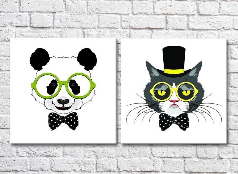 Картина ArtPoster Panda with glasses and a cat in a top hat (3447725)