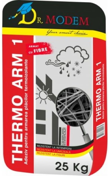 THERMO-ARM 1 усиленный фиброй полимерцементный клей для армирования в системе термоизоляции зданий. Обеспечивает высокую адгезию к основанию, а также влагостойкость и эластичность. Клей обладает отличной трещиностойкостью, морозостойкостью, паропроницаемостью и высокой атмосферостойкостью.