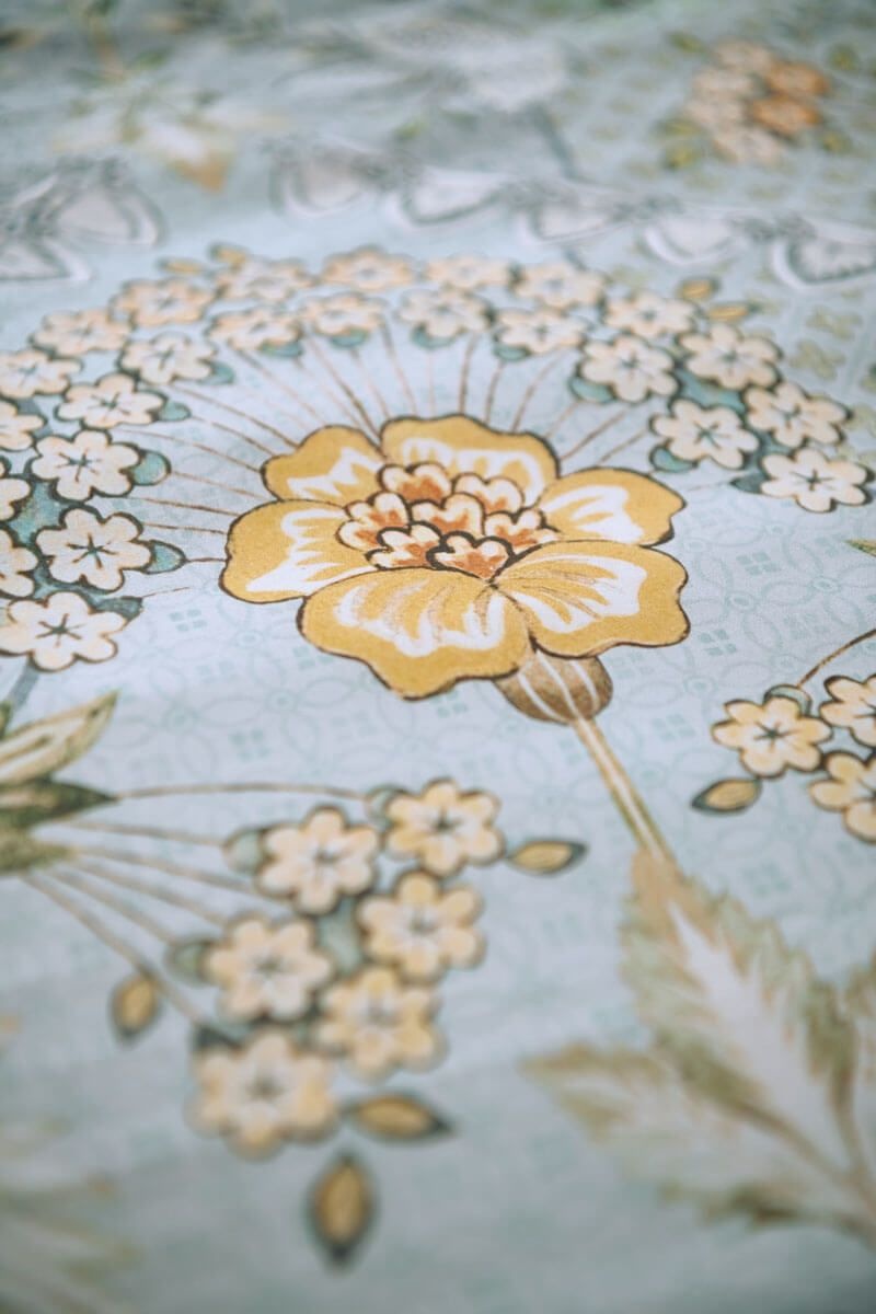 Голубой пододеяльник Saluti Grandi украшен симметричным цветочным узором, вдохновленным красивыми мотивами обоев из Италии. На спине имеется узор из полосок. Чехол и наволочки имеют по бокам стеганую оксфордскую кайму, придающую изделию роскошный вид. Наволочки имеют застежку-бантик и, как и пододеяльник, имеют две разные стороны и могут использоваться с обеих сторон. Таким образом вы создадите игривый эффект смешивания и сочетания.