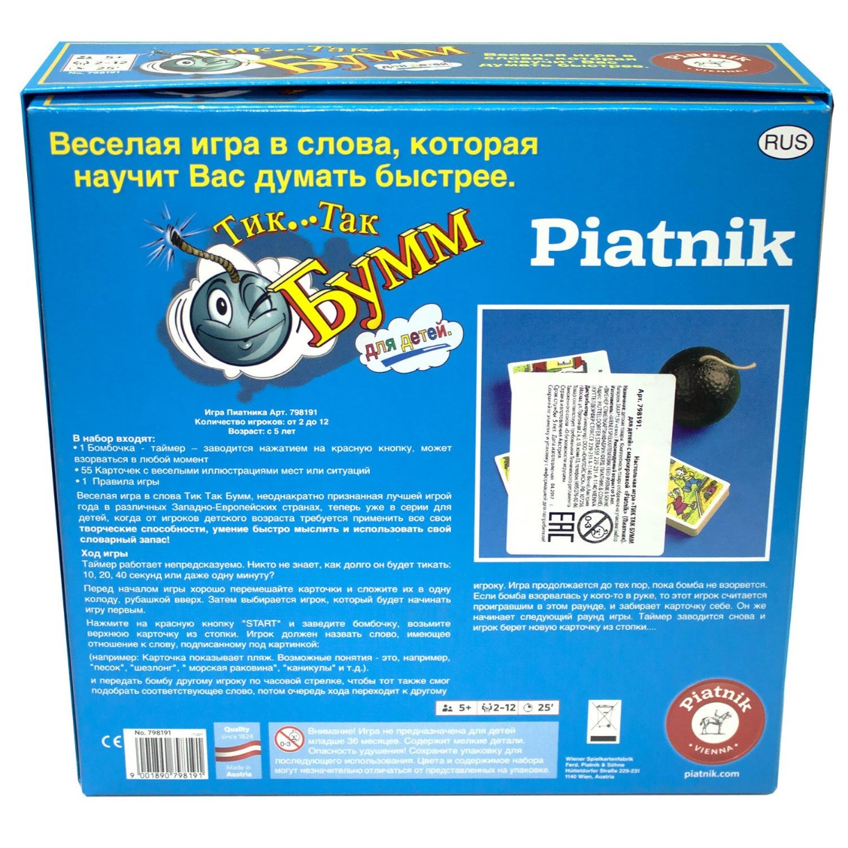 Веселая игра в слова Тик Так Бумм неоднакратно признанная лучшей игрой года в различных Западно-Европейских странах, теперь уже в серии для детей, когда от игроков детского возраста требуется применить все свои творческие способности, умение быстро мыслить и использовать свой словарный запас!