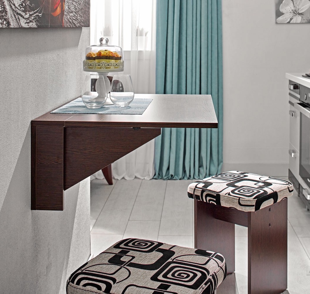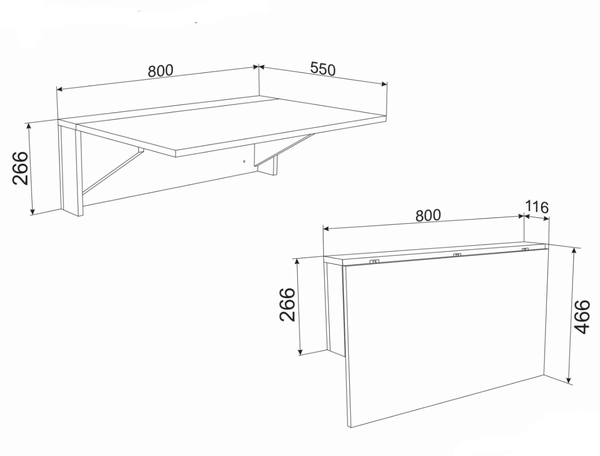 Современный навесной стол Tina предназначен для малогабаритных помещений. Изделие не занимает много места, в сложенном виде, может использоваться, как дополнительная полка. Идеальное решение для маленькой кухни.