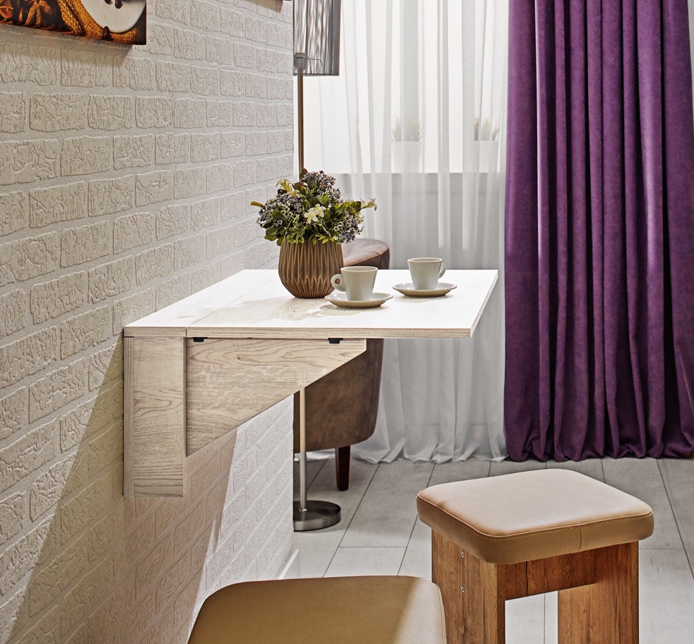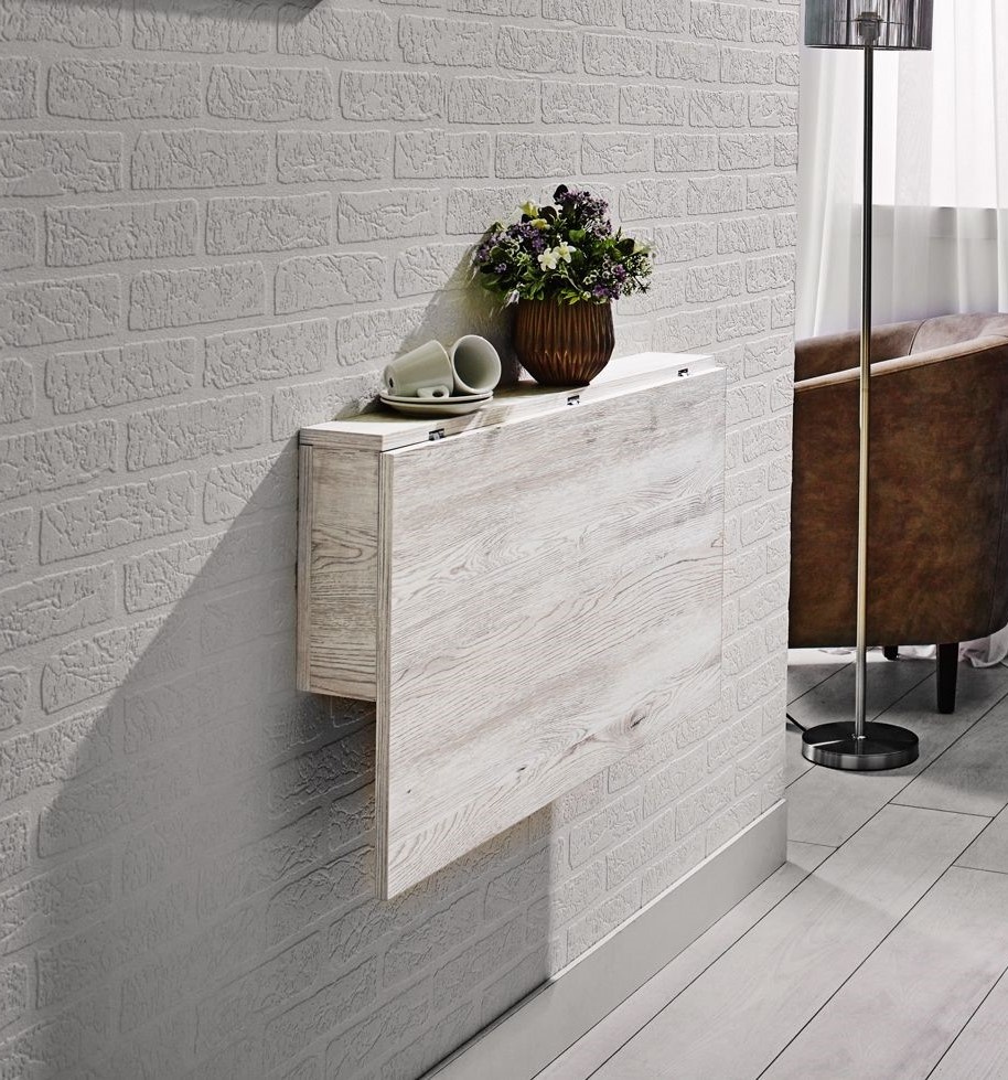 Современный навесной стол Tina предназначен для малогабаритных помещений. Изделие не занимает много места, в сложенном виде, может использоваться, как дополнительная полка. Идеальное решение для маленькой кухни.