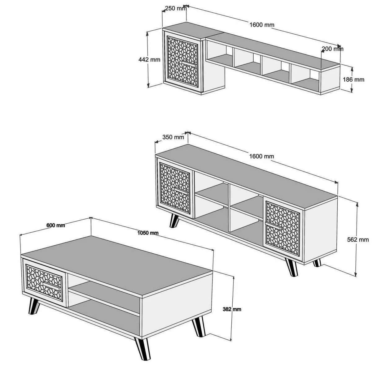 Преобразите вашу гостиную в комфортное и элегантное пространство с нашим изысканным комплектом мебели для гостиной. Изготовленный из древесных плит, покрытых меламином, этот набор создан для долговечности и стойкости к ежедневному использованию.