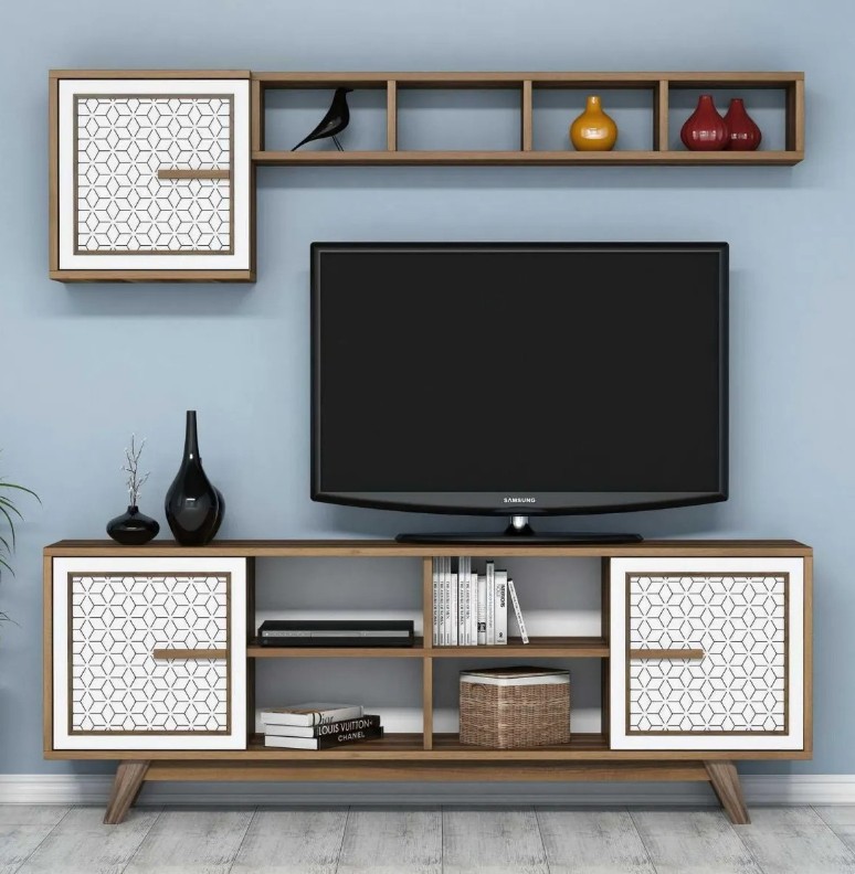 Создайте привлекательное и уютное пространство с нашей впечатляющей телевизионной тумбой. Изделие выполнено из древесных плит, полностью покрытых меламином, что делает конструкцию прочной и в то же время эстетичной. Современный дизайн добавляет утончённости любому интерьеру.