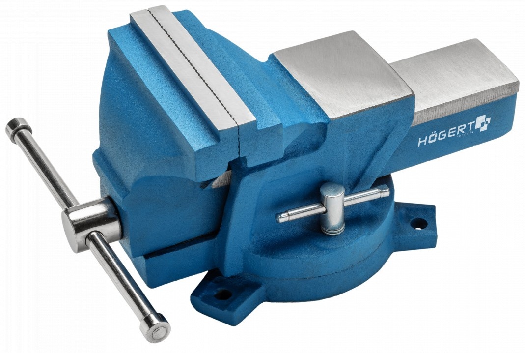 Поворотные слесарные тиски позволяют регулировать их положение в зависимости от ваших потребностей и формы заготовки. Регулируемое и надежно фиксируемое позиционирование вокруг вертикальной оси на 360 градусов облегчает и ускоряет работу.