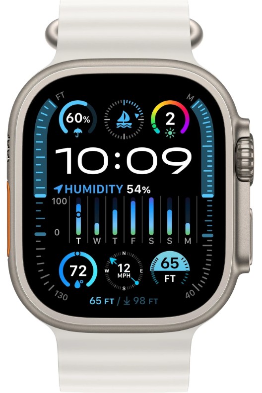 Новая передовая архитектура дисплея повышает максимальную яркость Apple Watch Ultra 2 до 3000 нит — на 50 процентов ярче, чем первое поколение Apple Watch Ultra, и самый яркий дисплей, когда-либо создававший Apple — для лучшей читабельности под ярким солнечным светом. При слабом освещении он тускнеет до 1 болт. Ночной режим автоматически активируется в темноте. Фонарик также выигрывает от новой архитектуры дисплея вращения Digital Crown удваивает яркость, чтобы лучше освещать путь.