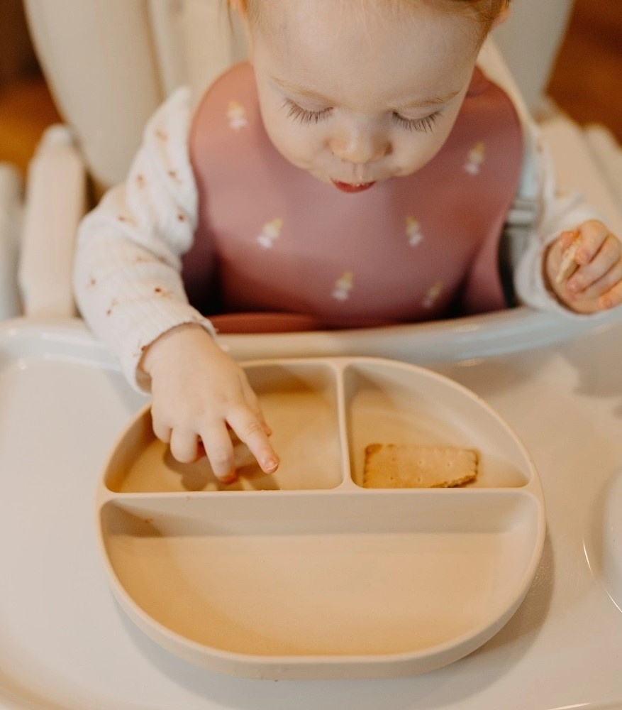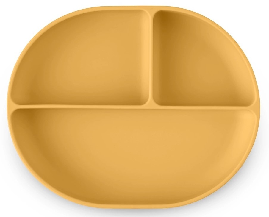 Тарелка оснащена тремя отделениями, которые позволяют разделить еду на три отдельные части. Консистенция и форма продуктов не смешиваются на тарелке, что делает процесс приёма пищи для ребёнка более удобным и эстетичным. Для комфорта как ребёнка, так и родителей, тарелка имеет основание с присоской, которое прочно прикрепляется к поверхности стола или стульчика.