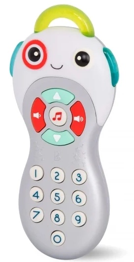 Этот игрушечный пульт принесёт массу удовольствия и знаний! Малыш может играть с громкостью, «переключать» каналы, прослушивать 9 различных мелодий и исследовать цифры, нажимая на кнопки. Игрушечный пульт легко брать в руки, а текстурированное кольцо отлично подходит для любителей грызть предметы!