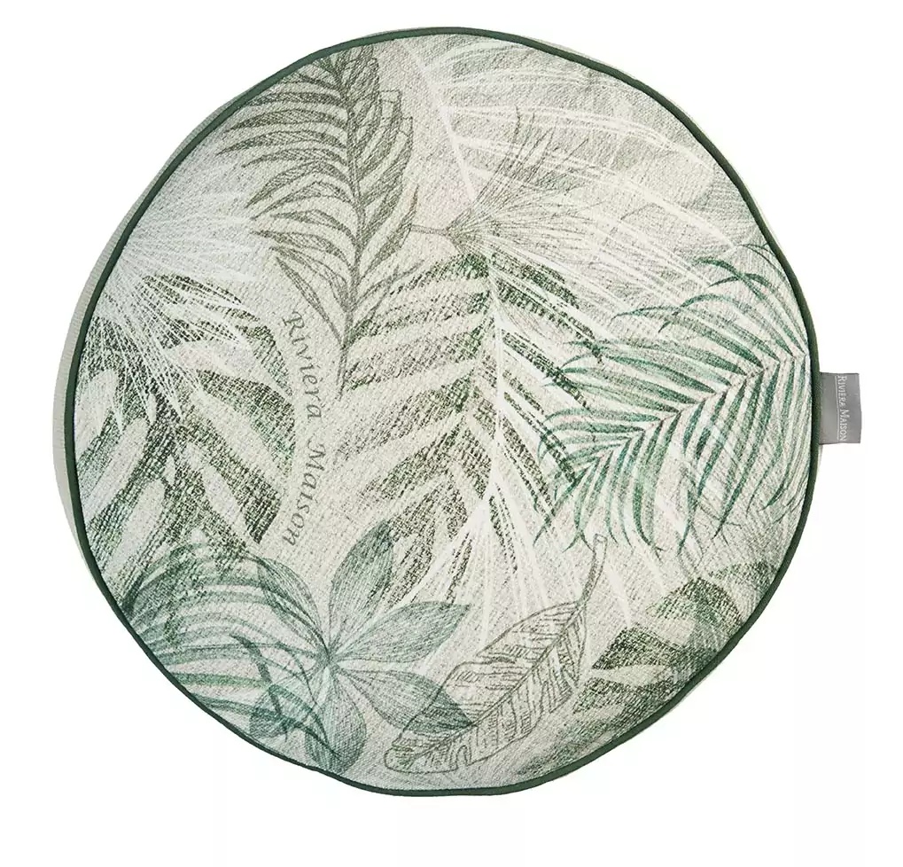 Декоративная подушка Bayou — круглая современная подушка из хлопка грубого плетения. На лицевой стороне принт в виде листьев; включая пальмовые листья, листья монстеры и банановые листья песочного, зеленого и белого цветов. Это означает, что декоративная подушка Bayou идеально вписывается в ботанический тренд. Темно-зеленая окантовка по периметру придает декоративной подушке шикарный акцент.