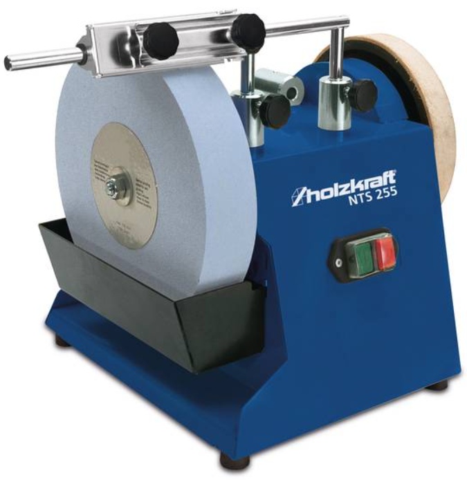 Универсальный шлифовально-полировальный станок Holzkraft NTS 255 предназначен для заточки, правки и доводки (полировки) режущего инструмента (в основном ручного) и других изделий из металлов, стекла и камня с высокой точностью и без отпуска режущей кромки.